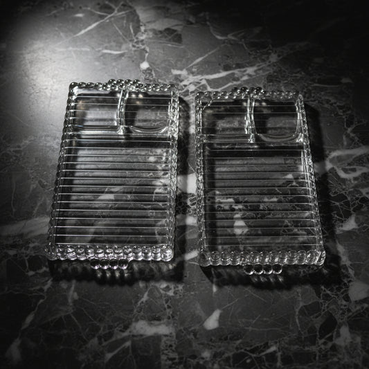 1950s Hazel-Atlas Ball & Ribbed Sip, Snack & Smoke Tray - Set of 2