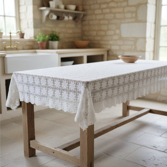 Vintage Hand Crochet White Cotton Tablecloth
